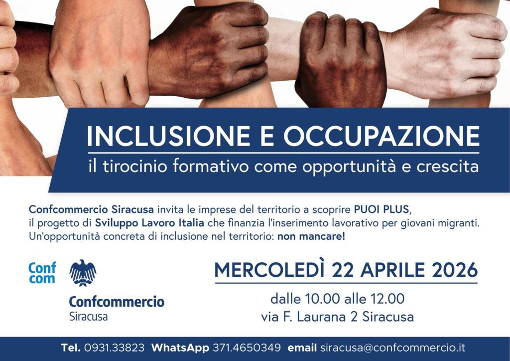INVITO MERCOLEDì 22 APRILE H.10.00: PROGETTO PUOI PLUS | Confcommercio - Imprese per l'Italia - Siracusa